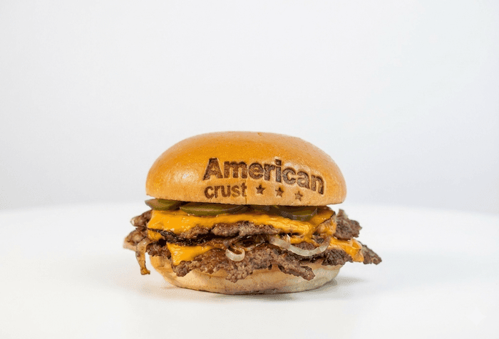 chifla, carne de vita Black Angus, cheddar, castraveti murati, ceapa prajita, sos burger, sos american - 250g/340g/430g